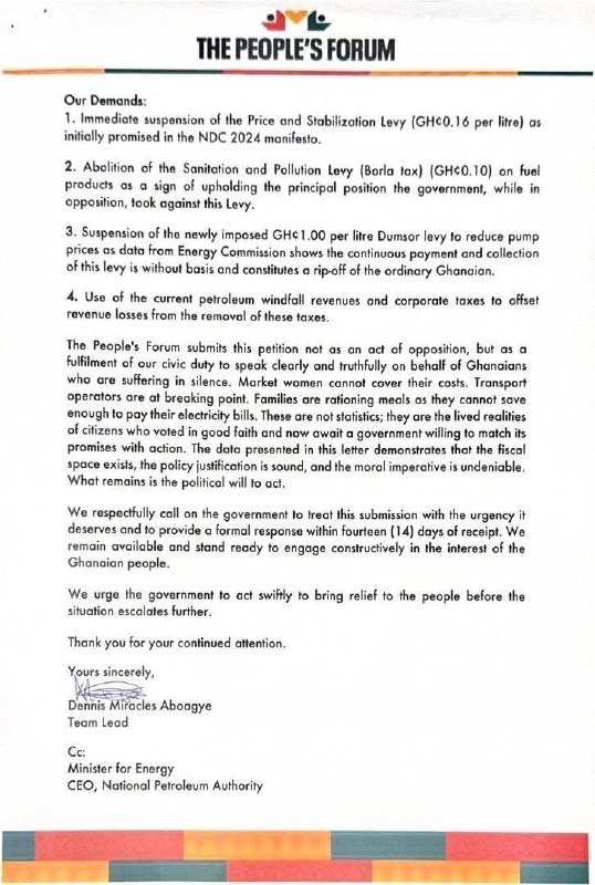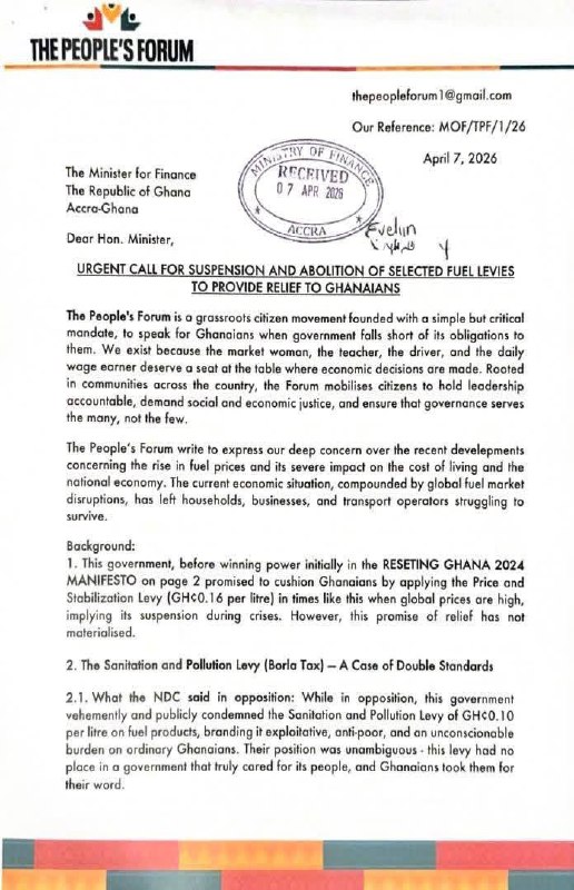 A civil society group, The People’s Forum, has formally petitioned the government over the continuous rise in fuel prices, warning of the growing economic hardship faced by Ghanaians.