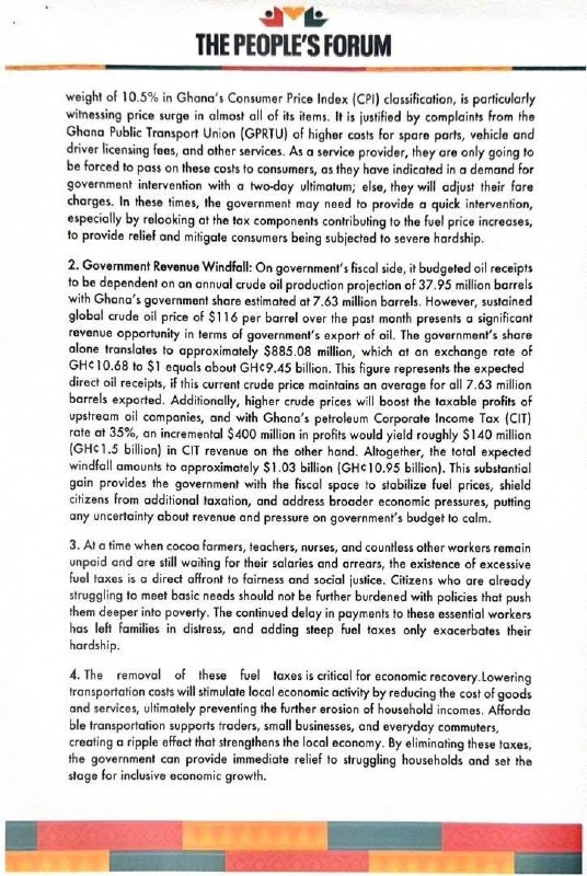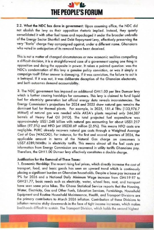 The People’s Forum also pointed to high global crude oil prices, stating that Ghana is currently benefiting from increased oil revenues.