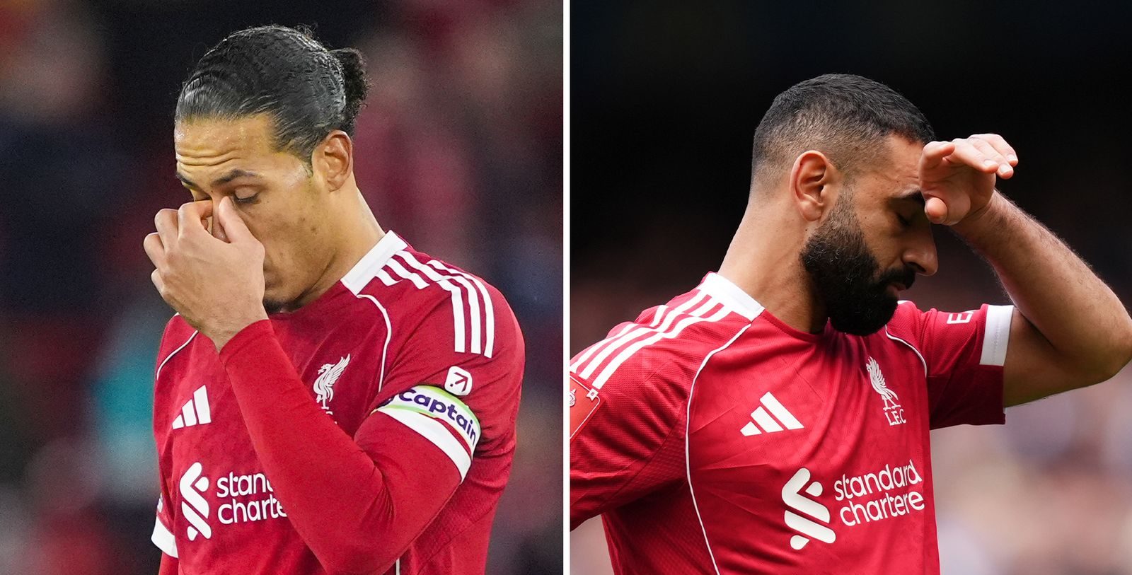 Arne Slot and Virgil van Dijk after Liverpool's 4-0 defeat to Man City in the FA Cup